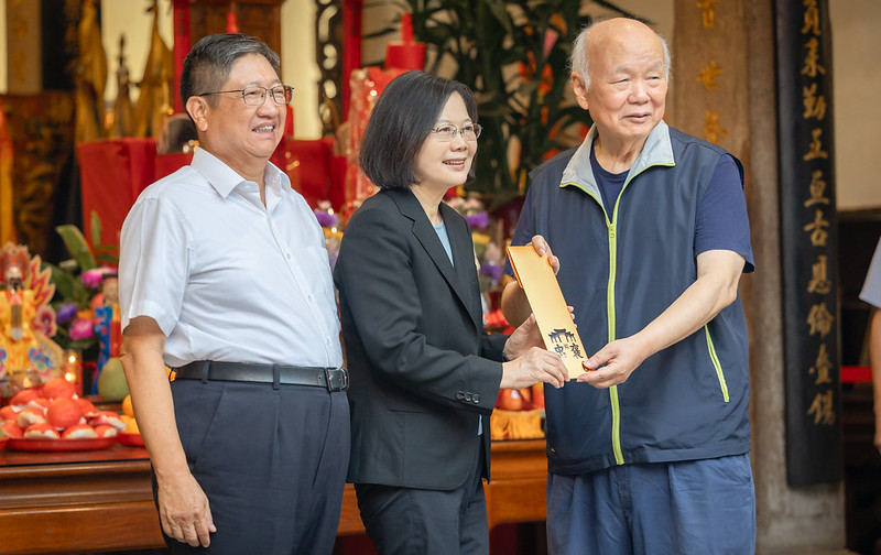 由於總統明(5)日將出訪史瓦帝尼王國,新竹縣長楊文科及義民廟董事長林光華也呈贈總統「平安符」,祝福總統出訪平安順利。