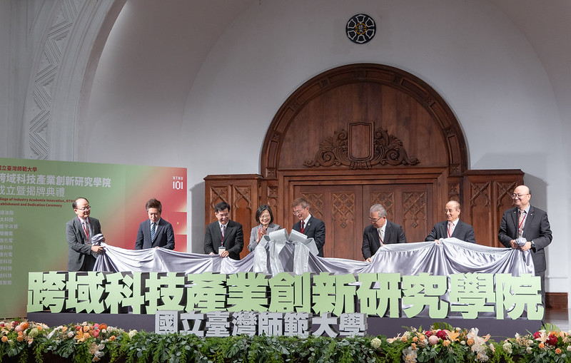 總統致詞時,首先感謝臺灣師範大學響應政府的產業創新政策,成立了「跨域科技產業創新研究學院」。在2021年《產學創新條例》通過之後,這是第10所頂尖大學加入設立研究學院的行列,也是第11個研究學院。