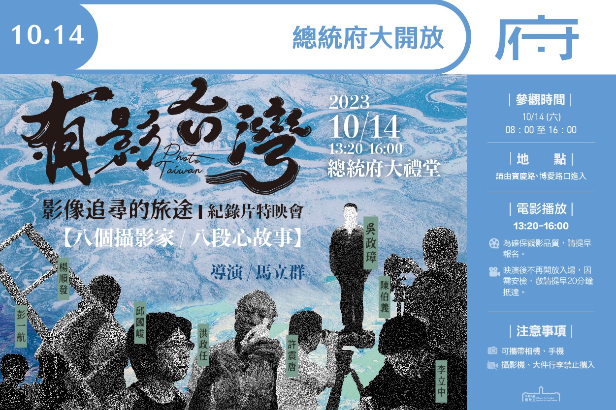 總統府10月14日開放參觀 放映《有影台灣 影像追尋的旅途》紀錄片