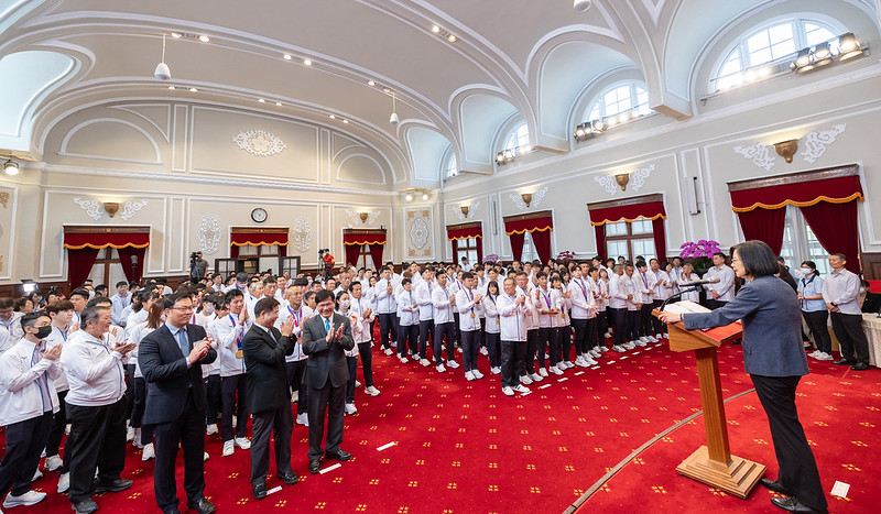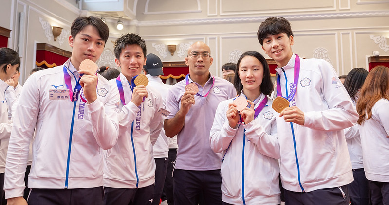 總統指出,今年8月的世大運,臺灣突破歷屆境外的最佳紀錄;本屆亞運,臺灣一共得到19金、20銀、28銅,排名第6的好成績。