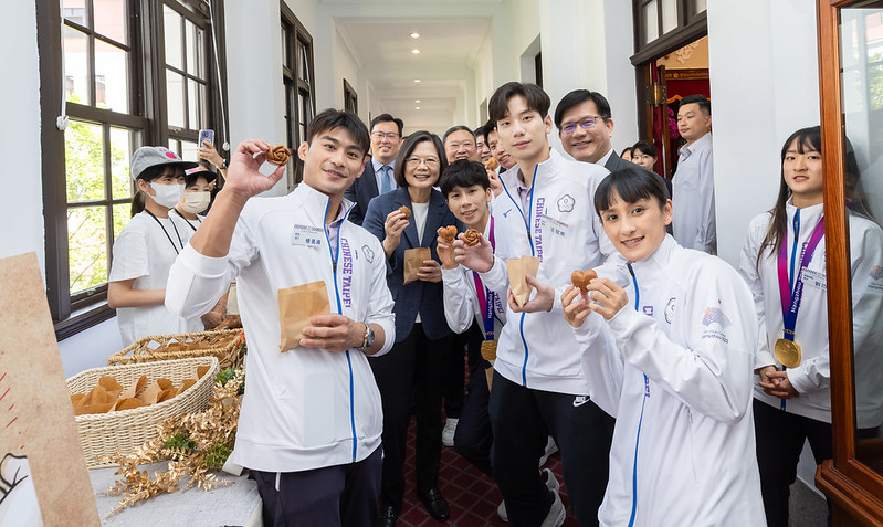總統提到,體操選手丁華恬及體操男子成隊,也分別拿下女子隊史及男子團隊的首面獎牌,都具有歷史性的意義。滑輪溜冰代表隊,一共拿下7金、2銀、4銅的優異成績,是我們獎牌數量最多的代表隊。尤其,黃玉霖選手以0.01秒逆轉韓國奪金的「臨門一腳」,更成為本屆亞運的經典場面之一。