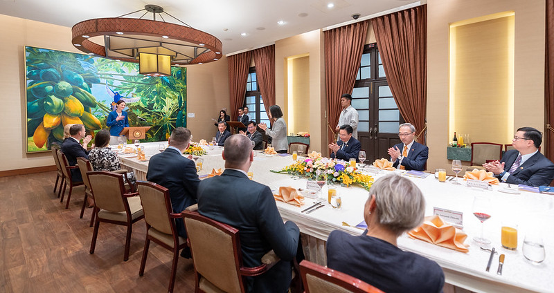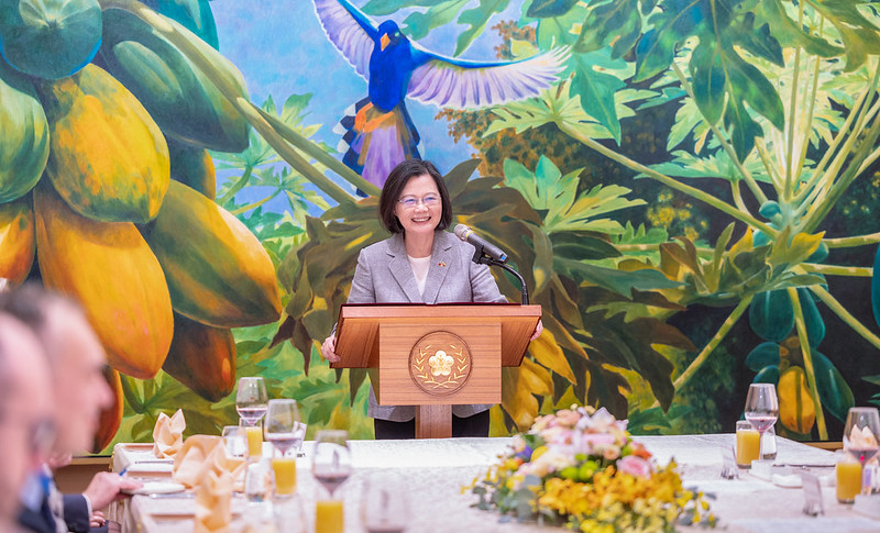 總統致詞時首先歡迎希米利特議長及所有貴賓來到臺灣。她指出,希米利特議長曾說過「印太地區對立陶宛而言非常重要」,也曾多次表達希望能來臺灣訪問,她今天很高興能在總統府與訪團貴賓見面交流。