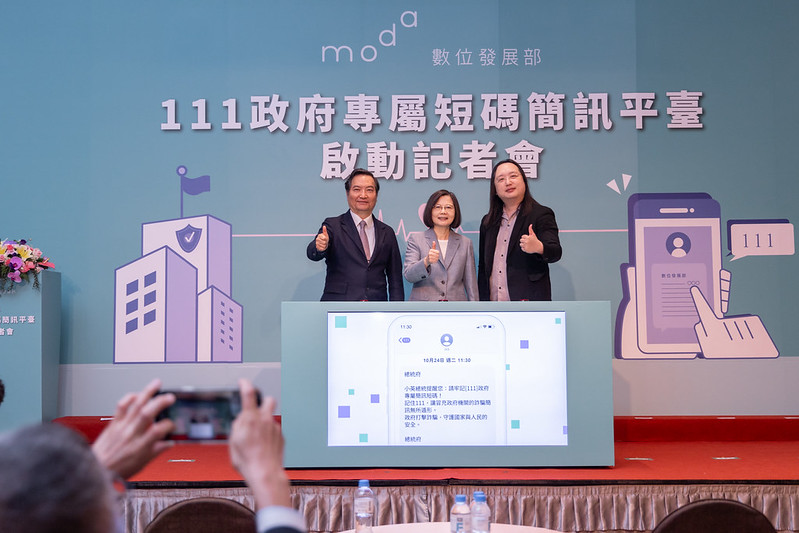 蔡英文總統今(24)日上午出席「『111政府專屬短碼簡訊平臺』啟動記者會」時指出,「111」政府專屬短碼,從源頭強化民眾可信任的資訊來源,防制冒充政府的詐騙簡訊,讓民眾能更快速、清楚地辨認簡訊真偽,避免落入詐騙集團的陷阱。她強調,政府打詐絕不鬆懈,將持續集結中央、地方及民間力量打擊詐騙,也請國人提高警覺,一起守護國家社會安全。