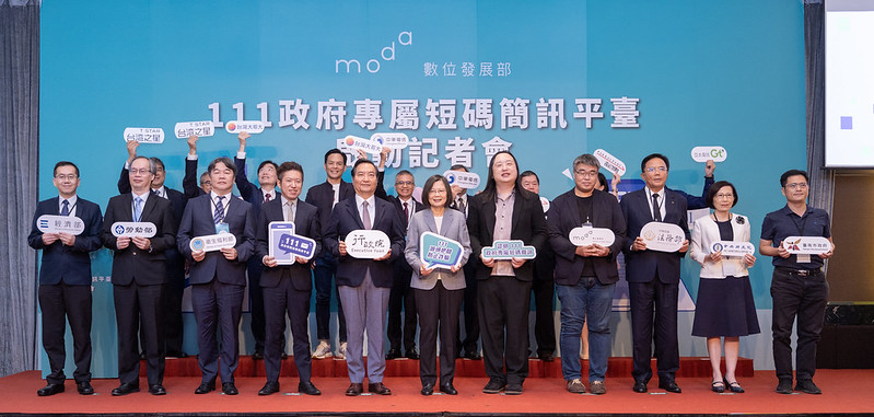 隨後,總統與現場貴賓共同進行啟動儀式,並向現場媒體朋友發送第一則「111」短碼簡訊。