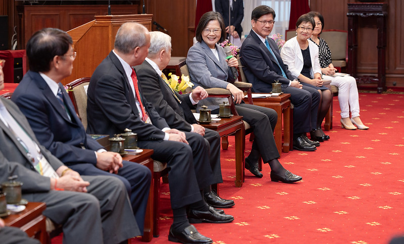 訪賓一行由「美國北加州傳統僑社回國訪問團」團長鄧灼照率領,僑務委員會委員長徐佳青陪同,前來總統府晉見總統,總統府秘書長林佳龍也在座。