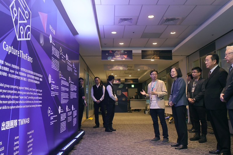 隨後,總統參觀CaptureTheFans競賽場域,以及勤業眾信、睿控網安等展區攤位,瞭解資安技術發展及企業如何應變各種資安問題。