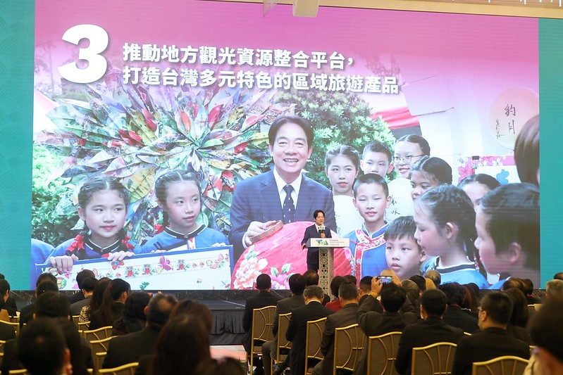 賴清德副總統今(13)日下午出席「台灣觀光協會捐贈人年會暨成立67週年慶祝茶會」時表示,希望以「觀光立國」為目標,推動「部部有觀光」及地方觀光資源整合平台,並籌設觀光研訓暨國際推廣專責機構、輔導觀光業者全面數位化,期盼打造獨一無二的臺灣觀光品牌,讓世界看見臺灣,也讓臺灣走進世界。