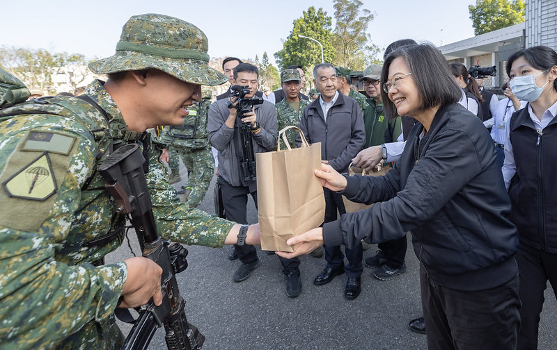 蔡英文總統今(15)日上午前往臺中勗勉「特四營戰術任務訓練」,肯定特四營以高昂的士氣、機敏的應變能力,一一完成各項任務,展現紮實的訓練成效與特戰部隊勇猛剽悍的精神。她期許大家在快速變動的局勢中,可以迅速調整訓練內容,精進訓練及整備效益,並感謝現場的家屬、親朋好友當後盾,讓國軍弟兄姊妹在辛勞的時刻,獲得家人的溫暖,繼續為守護國家來努力。