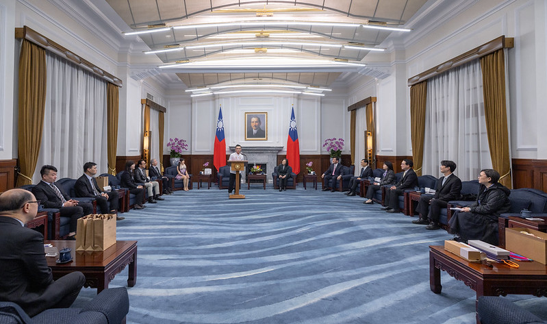 訪賓一行由台北市糕餅商業同業公會理事長周正訓率領,經濟部次長陳正祺陪同,前來總統府晉見總統,總統府秘書長林佳龍也在座。