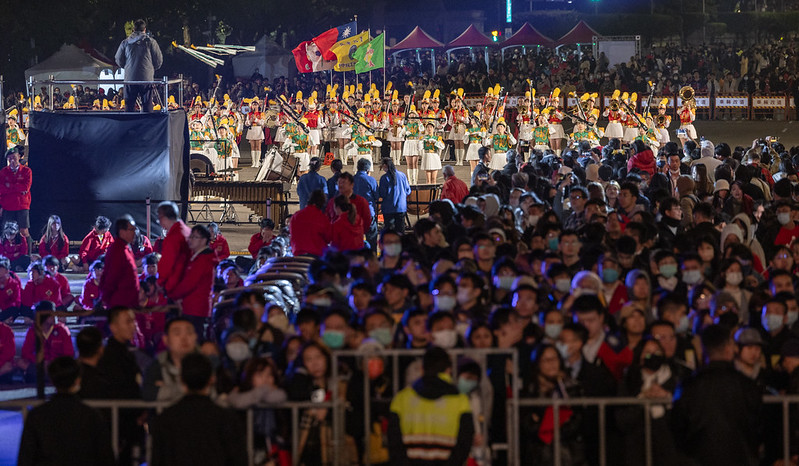 升旗典禮結束後,總統與副總統步上舞台,向參與典禮人員揮手致意;期盼新的一年,各世代彼此尊重包容、堅毅向前,共同迎向活力且永續的臺灣。