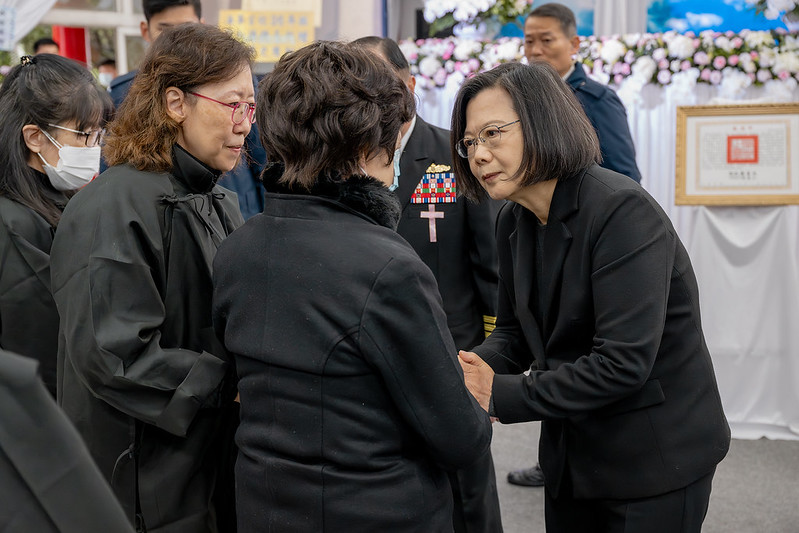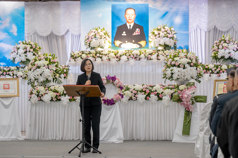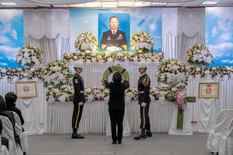 最後,總統感謝歷任國防部長及治喪委員會的委員們,圓滿完成治喪的各項事宜。她相信,我們都會秉持著劉上將「建設堅韌大無畏海防」的精神,繼續推動國防自主、發展國軍現代化及專業化,展現自我防衛的決心,共同為守衛海疆盡一份心力。