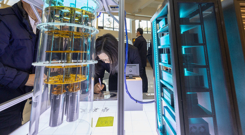 隨後,總統與現場貴賓一同參觀量子電腦模型展示,包括總統府秘書長林佳龍、副秘書長張惇涵、國家科學及技術委員會主委吳政忠、經濟部長次長林全能、中央研究院院長廖俊智及工業技術研究院院長劉文雄等亦出席是項活動。