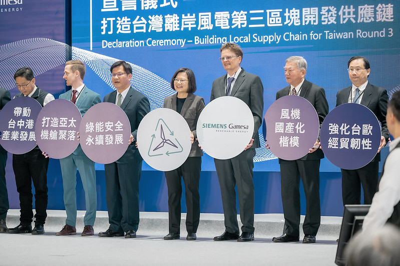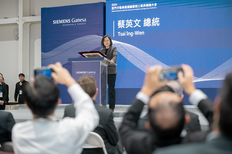 蔡英文總統今(1)日上午前往臺中出席「西門子歌美颯機艙廠竣工暨供應鏈大會」時表示,到去年底為止,臺灣外海已有超過280座風力機,設置量也達到2.25GW,成為世界上少數離岸風電突破2GW的國家。臺灣對於發展綠色能源不僅有堅定的決心,更有穩健的步伐,將在綠能發展上持續站穩領先地位,並將成功經驗擴散到亞洲其他地區,為全球淨零轉型貢獻關鍵的力量。