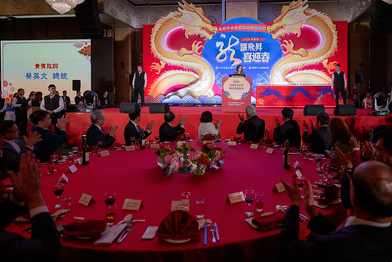 總統致詞時表示,今天很高興在龍年開春之際和臺灣中小企業的好朋友見面,她要跟大家拜個晚年,祝福大家在新的一年,事事如意、事業興隆、平安順利,也要感謝大家在世界的變局中,和政府一起打拚,展現靈活及彈性,用心經營企業,為臺灣創造亮眼的經濟成績。