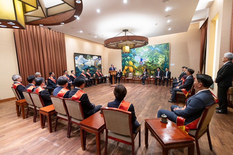 訪賓一行由中華民國企業經理協進會理事長羅達賢率領,經濟部次長陳正祺陪同,前來總統府晉見總統,總統府秘書長林佳龍也在座。