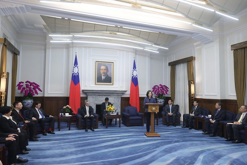 總統相信,透過這次訪問,訪賓對臺灣將有更深入的了解,也有助於雙邊在半導體、新創、經貿等領域有更多的交流合作。最後,她祝福大家行程圓滿順利,有豐富的收穫。