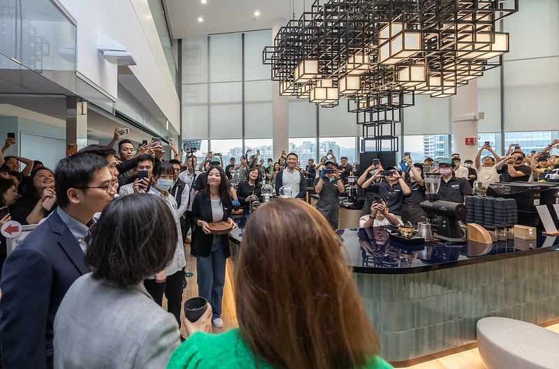 隨後,總統與現場貴賓一同進行啟動儀式,並參觀Google新辦公大樓的員工餐廳咖啡區、「G Logo區」及手機感測實驗室等。