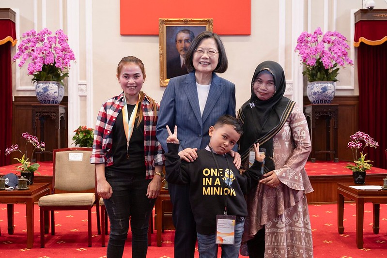 總統提到,現場的模範移工得獎人來自菲律賓、泰國、越南及印尼等國家,她要感謝大家為臺灣的產業發展、照護工作盡心盡力,一起為臺灣打拚。今天也首度邀請移工朋友的家人來到臺灣,共同分享獲獎的喜悅。