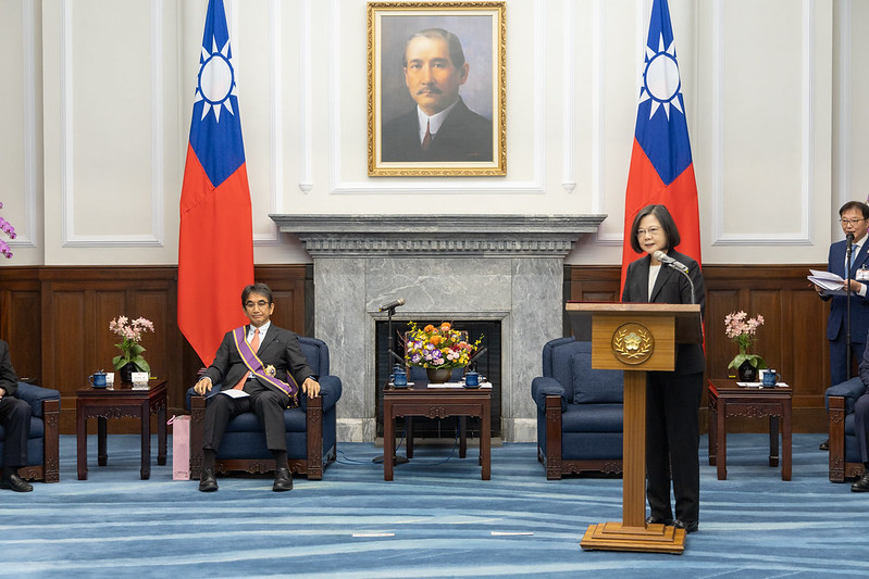 蔡英文總統今(9)日上午頒授日本前外務省大臣官房長垂秀夫「大綬景星勳章」,表彰並感謝垂大使對臺日關係的卓越貢獻。並表示,垂大使秉持外交上的遠見,為臺日合作積極奔走,也成就今日雙邊關係的發展。現在,臺灣和日本已經是世界上互相支持的民主典範,共享自由和人權的價值,更是守護區域和平的重要力量。她感謝垂大使爲臺日關係扎穩根基,也歡迎垂大使常常回來臺灣。