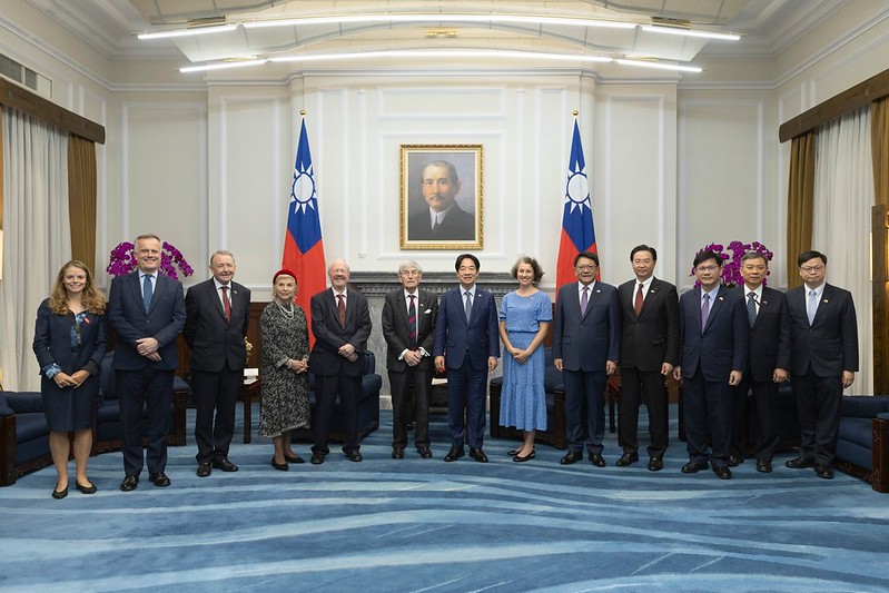 總統表示,相信訪賓透過這次的來訪,不僅彰顯臺灣和英國的友好關係,也為未來雙方的互動交流持續累積基礎。他感謝英國上議院副議長羅根勳爵(Lord Rogan)積極推動英國的友臺力量;也感謝英國下議院外交委員會以及國防委員會,在去年發表印太報告,展現對臺海和平的重視。