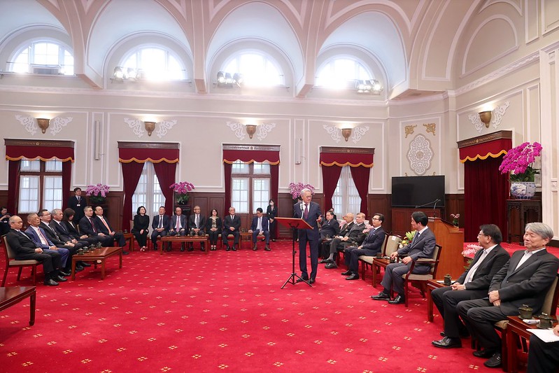 訪賓一行由經濟部部長郭智輝陪同,前來總統府晉見總統,總統府秘書長潘孟安也在座。