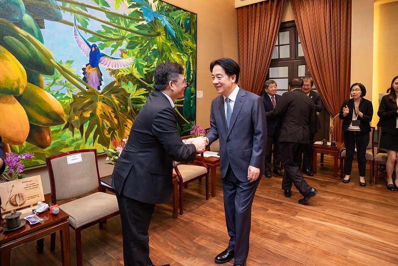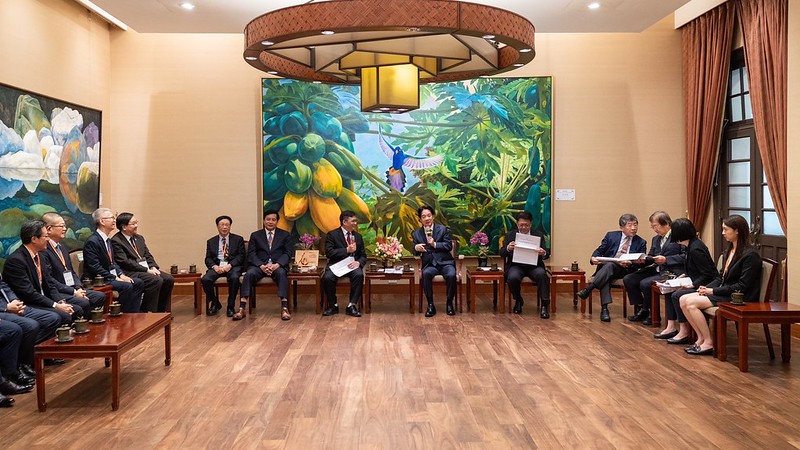 訪賓一行由行政院政務委員陳時中、衛福部長邱泰源陪同,前來總統府晉見總統,總統府秘書長潘孟安也在座。