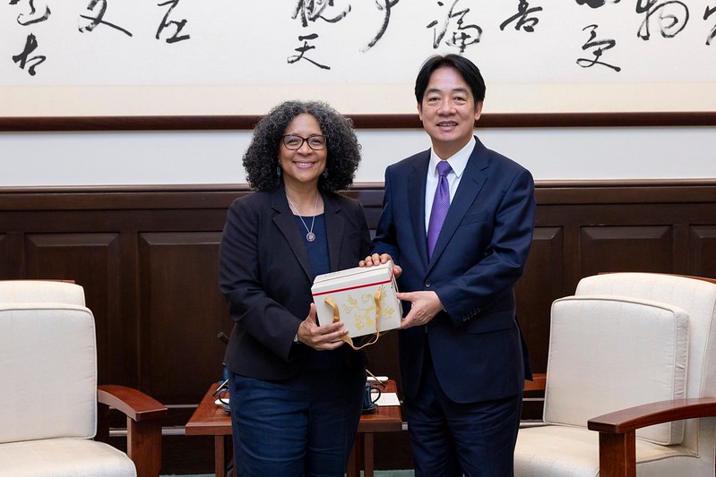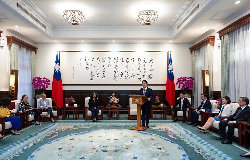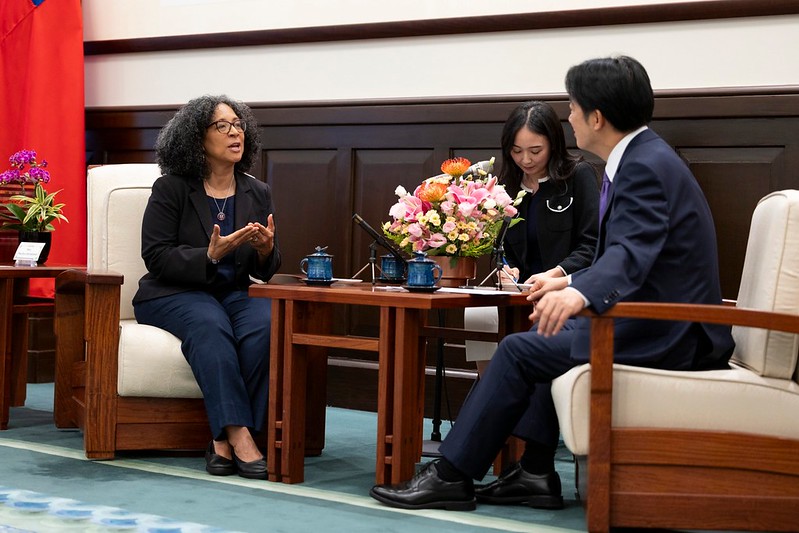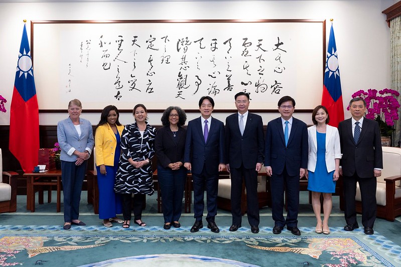 訪賓一行尚包括美國聯邦眾議院眾議員布朗莉(Julia Brownley)及柯珞珂特(Jasmine Crockett),由外交部長林佳龍陪同,前來總統府晉見總統,國家安全會議秘書長吳釗燮也在座。