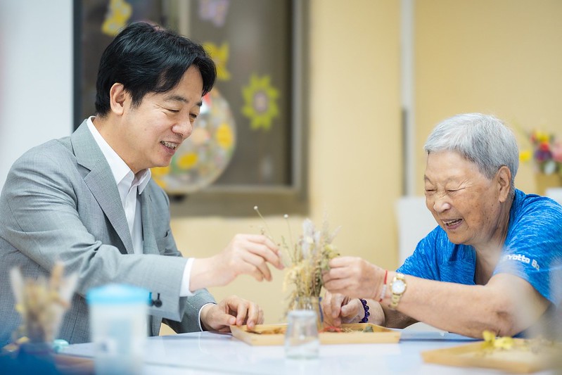 稍早,總統也視察旺福公共托老中心,聽取該中心歷史沿革及環境介紹,並與中心長輩親切寒暄、互動及參與艾草手作課。