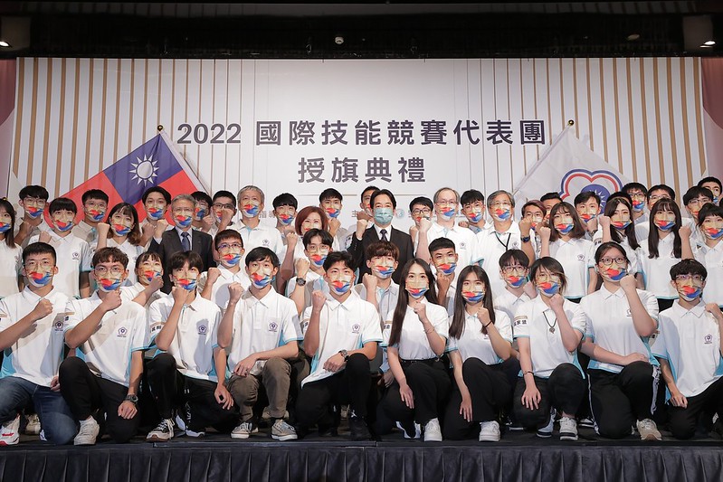 隨後,總統頒授國旗及會旗予我代表團,為即將出征的選手們加油打氣。包括勞動部長何佩珊、勞動力發展署署長蔡孟良等亦出席是項活動。