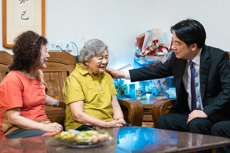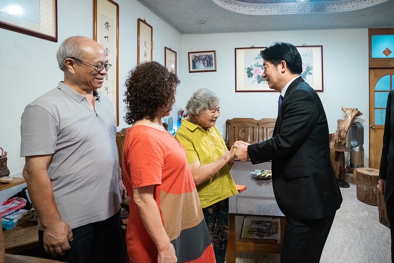 賴清德總統今(3)日下午前往臺南新化慰問八二三遺族呂陳氣女士,並代表國家向其先夫呂松全致上敬意與感謝。