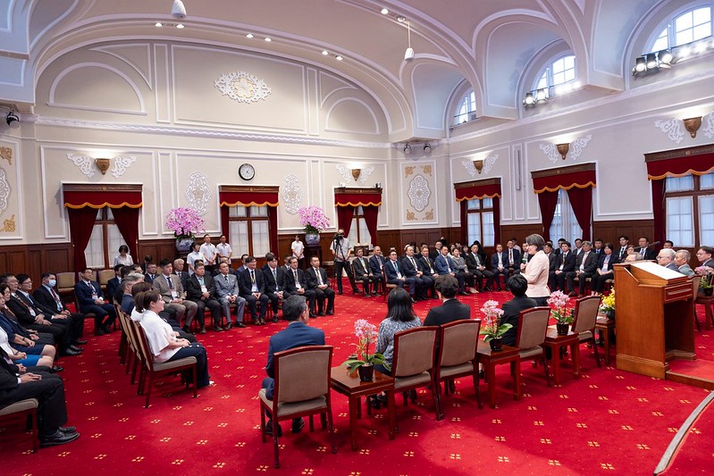 總統:臺灣雖然擁有半導體產業,在未來的人工智慧時代扮演關鍵角色,但我必須謙卑地說,臺灣半導體產業是全世界共同的資產,因為半導體產業是一個生態系。好比說美國擁有研發、設計以及廣大市場,日本擁有原料以及設備,荷蘭擁有先進的半導體製程設備,臺灣只不過是擁有邏輯製造,韓國擁有快速記憶體的晶片製造能力。