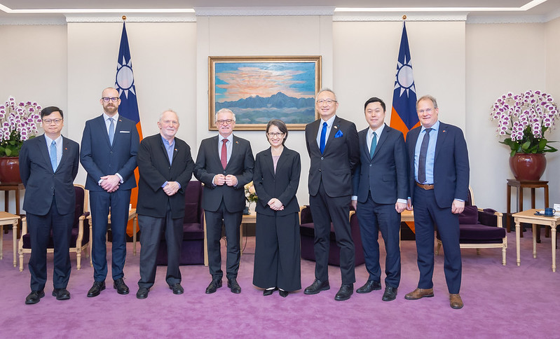 訪賓一行包括歐洲議會友台小組主席凱勒、議員愷達(Bernard Guetta)、柯安杰(Ondřej Kolář)、友台小組秘書長蒲森川(Markus Poesentrup),由外交部次長吳志中陪同,前來總統府拜會副總統。