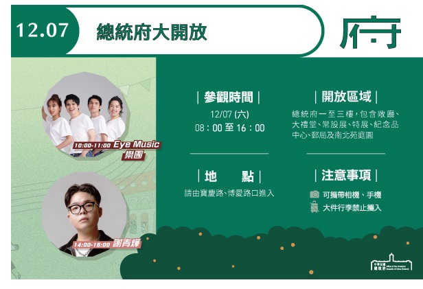 總統府12月7日開放參觀