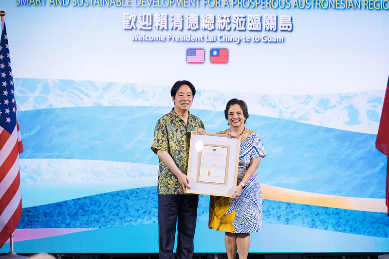 關島總督古蕾露(Lourdes A. Leon Guerrero)致詞時則表示,很高興關島成為賴總統出訪行程的其中一站,這展現出臺灣與關島間深厚且持續深化的連結,雙方不僅同屬南島語系血緣,更有共享價值與願景。她指出,團結就是力量,只要共同合作,就能更具韌性和靈活性,推動社會邁向更永續繁榮的未來,提升人民福祉。期待未來雙方有更多交流機會,互相分享知識、文化、機遇及傳統等,共同促進南島地區的進步。她也祝福賴總統此行成果豐碩,帶來有意義的連結及更智慧永續的未來。