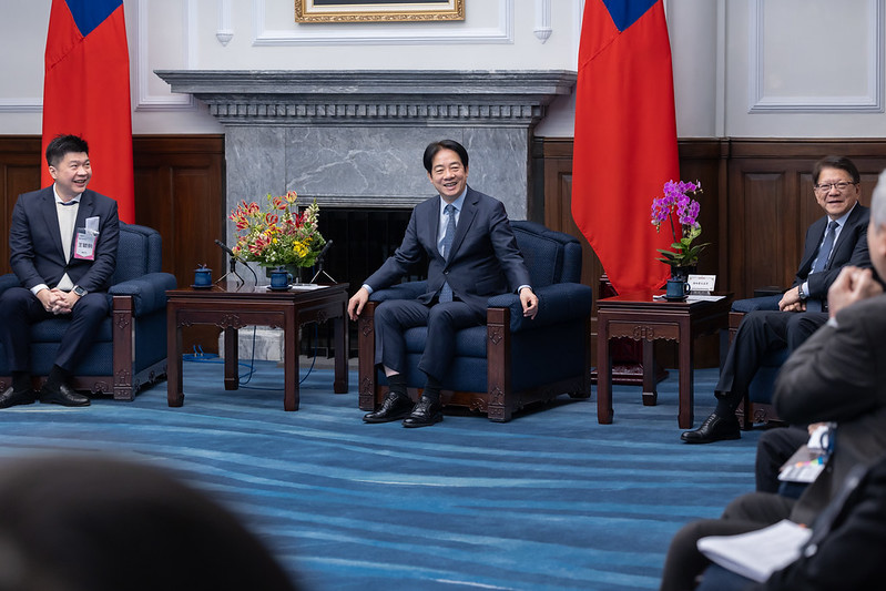 訪賓一行由數位發展部次長闕河鳴陪同,前來總統府晉見總統,總統府秘書長潘孟安也在座。