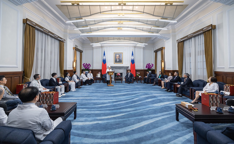 訪賓一行由衛福部次長林靜儀陪同,前來總統府晉見總統,總統府秘書長潘孟安也在座。