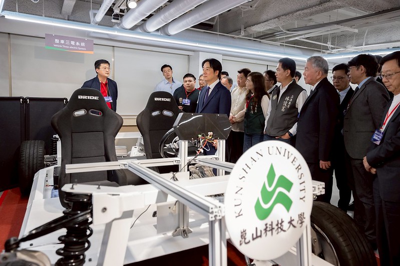 總統接著說,崑山科大是臺灣產業大學的領航者,2023年他到該校見證電動車領域產學合作成果,今天更見證成立「電動車晶片模組暨充電樁研發製造人才培育基地」。此項計畫由教育部補助七成、崑山科大出資三成,總計投入超過1億元。相信未來該校的電動車相關研發成果,一定可以協助臺灣產業布局全球,特別是對於美國市場,這將是非常有遠見的投資。