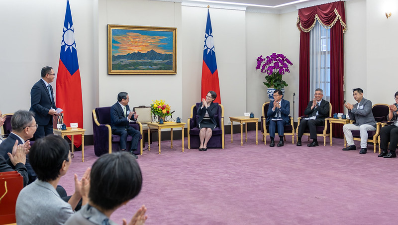 訪賓一行由台灣產業科技推動協會理事長涂醒哲率領,經濟部次長何晉滄陪同,前來總統府拜會副總統。