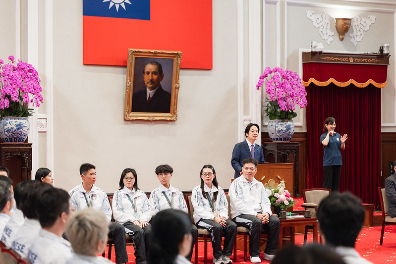 賴清德總統今(2)日下午接見「2025年東京第25屆達福林匹克運動會」代表團選手、教練及隊職員,肯定代表團在東京聽奧拿下1金、6銀、6銅的好成績,展現堅韌的臺灣精神。並表示,未來政府會投入更多資源,持續調整政策健全環境設施,也將照顧所有運動員的運動生涯,期盼全力落實「用運動壯大臺灣」的目標。